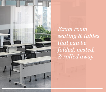 Perfect for lectures – flip top fold away for easy storage and reconfiguration in the space.